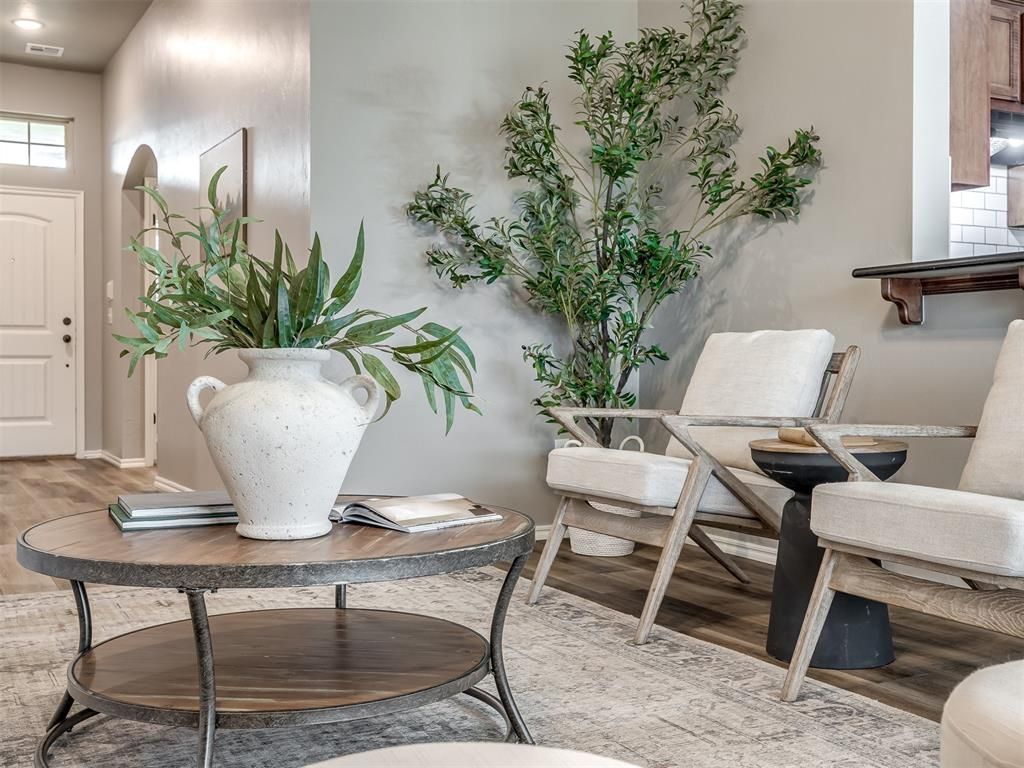 Comfortable, updated, and easy to love. Charming 3-bedroom, 2-bath home in Edmond Schools, situated on a desirable corner lot. Inside, you'll find luxury vinyl plank flooring throughout and updated light fixtures that create a fresh, cohesive feel.The kitchen features granite countertops and a white subway tile backsplash, giving it a clean, timeless look, and opens to a comfortable living space centered around a cozy fireplace-perfect for everyday living and gathering.Additional updates include a brand new water heater, offering added peace of mind. Neighborhood features a community pool and playground. With its great location, thoughtful updates, and easy layout, this home is one you'll want to see. Sellers are licensed real estate agents.