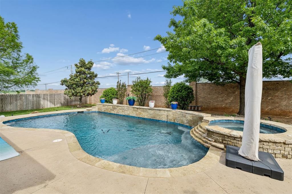 Welcome to this beautifully maintained home in the gated Oak Tree community, offering approximately 3,833 sq. ft. with 4 bedrooms, 3.5 bathrooms, 3 living areas, and 2 dining spaces. The layout is both functional and inviting, with a private study featuring built-ins, a spacious main living area with wood beamed vaulted ceilings with fireplace, new expansive ceiling fan and an open kitchen complete with granite countertops, gas cooktop, double ovens, refrigerator and generous storage. The primary suite is located downstairs and includes a walk-in shower, jetted tub, and separate vanity area. Upstairs features secondary bedrooms along with a theater room complete with projector and screen, theater style seating, plus a versatile landing space.Recent updates include fresh neutral paint in several areas, updated lighting, and new ceiling fans. Additional features include a storm shelter in the garage floor, water feature in front landscape and sprinkler system. The backyard is designed for both relaxation and entertaining with a saltwater pool and spa, water feature, multiple patio areas, pergola, and outdoor fireplace. There is also a side yard with dog run. Located in a gated neighborhood with a community park and future green space expansion planned nearby. Optional Oak Tree Golf & Country Club memberships are available, offering access to dining, fitness facilities, tennis, pickleball, and club pool with full-service bar & grill.This home offers a great opportunity to enjoy the Oak Tree lifestyle with space, amenities, and room to make it your own.